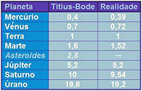 A lei de Titius-Bode é uma regra empírica que prevê a distância dos planetas ao Sol. A relação foi proposta pela primeira vez por Johann Daniel Titius, em 1766, e foi publicada por Johann Elert Bode em 1772. A lei estabelece que adicionando 4 à sequência numérica 0, 3, 6, 12, 24, 48, 96, 192 … (em que um novo número, a partir do segundo, é o dobro do número anterior) e os resultados divididos por 10 para formar a sucessão 0,4; 0,7; 1,0; 1,6; 2,8; 5,2; 10,0; 19,6; 38,8 … obtêm-se as distâncias médias dos planetas ao Sol, em Unidades Astronómicas – ua.