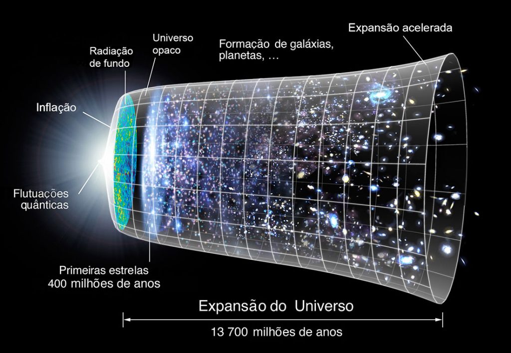Há cerca de 13,7 mil milhões de anos a matéria do Universo estava compactada num estado extremamente denso e quente. A partir desse momento passou a expandir-se continuamente.