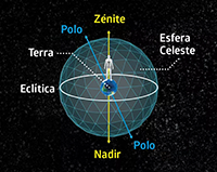Na mesma direção, mas no sentido oposto – isto é – precisamente por cima de nós – fica outro ponto imaginário, chamado Zénite.